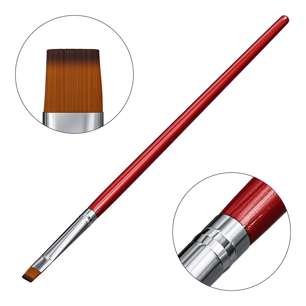 - Versatilitate De Necontestat: Perfectă pentru gelurile de unghii și pentru nail art, această pensulă nu numai că aplică uniform gelul, dar permite și crearea de modele și detalii uimitoare. Cu această pensulă, limitele creativității tale nu există.