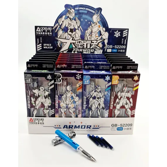 Stiloul este accesorizat cu desene ,potrivit pentru baieti.Vine insotit de 4 rezerve de cerneala